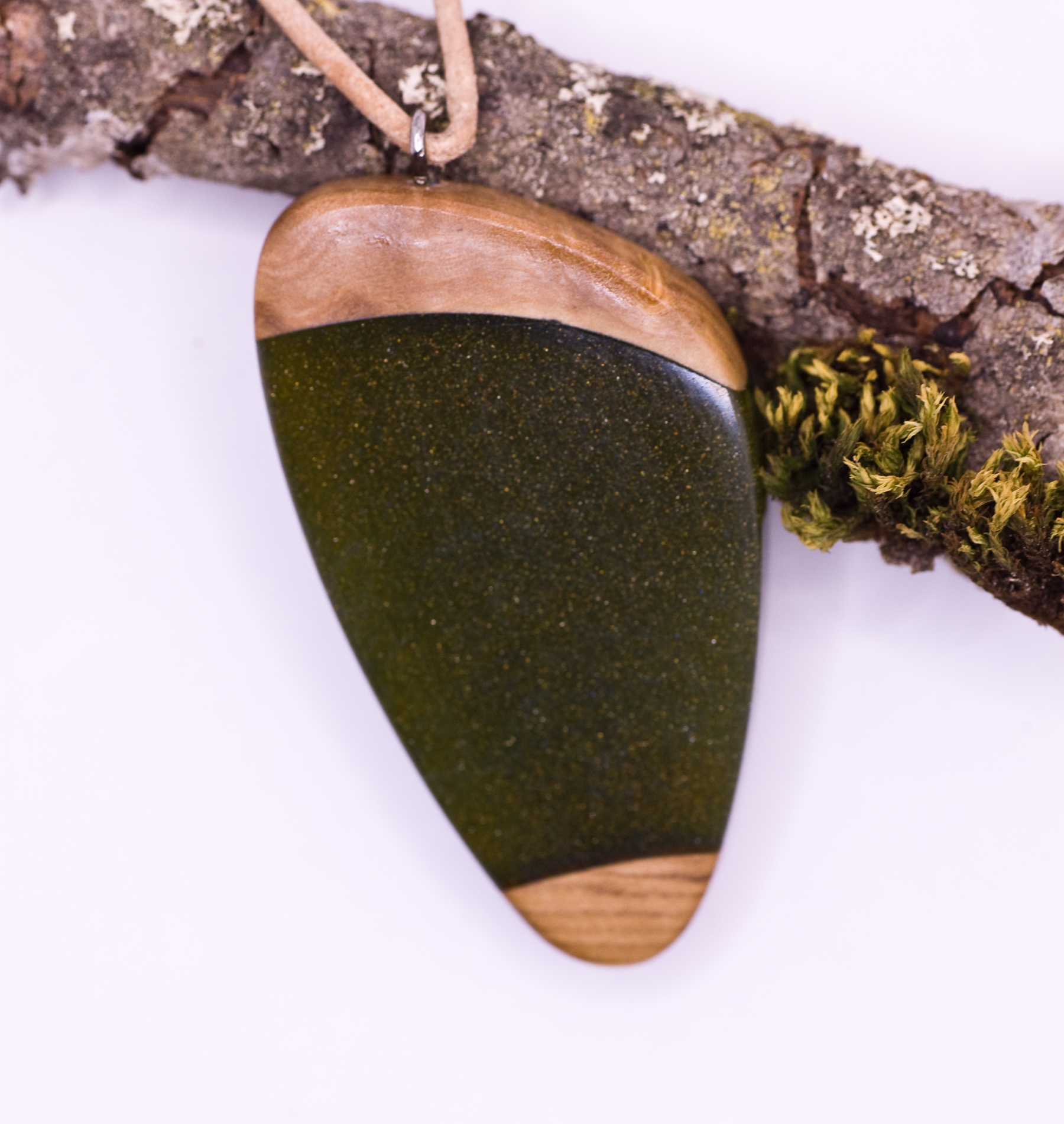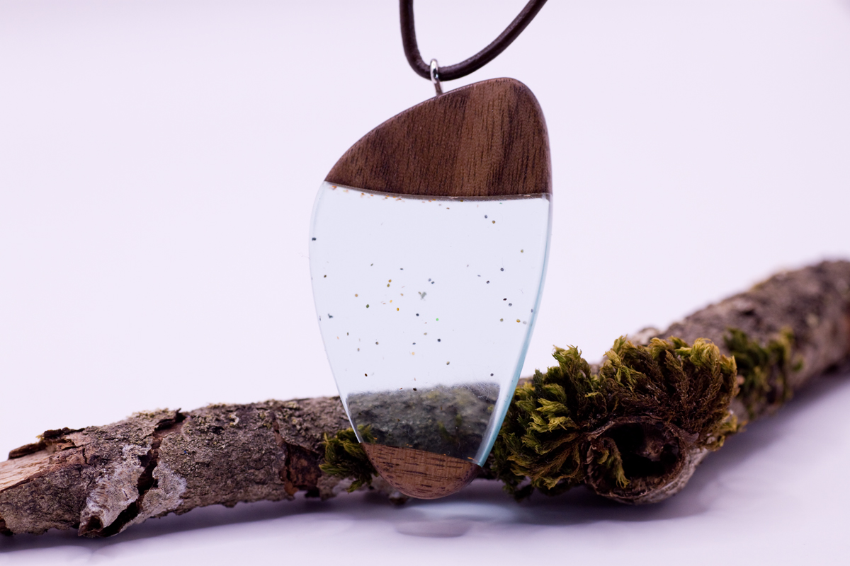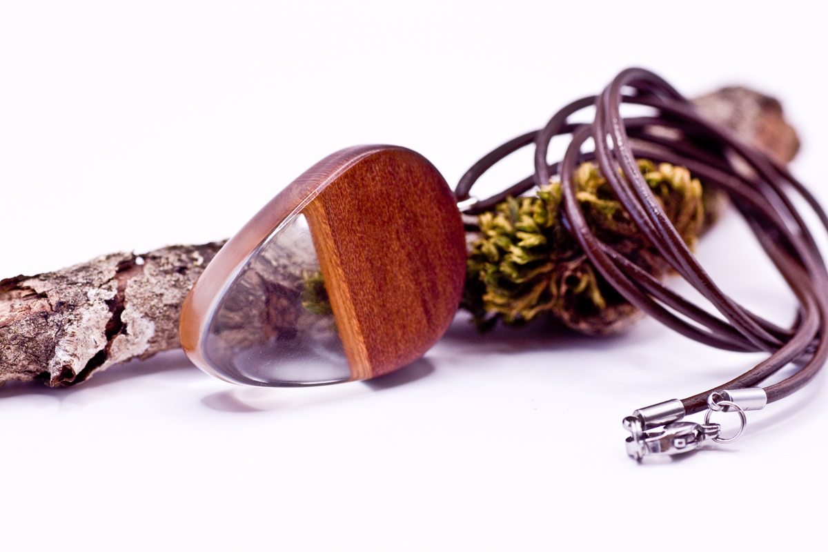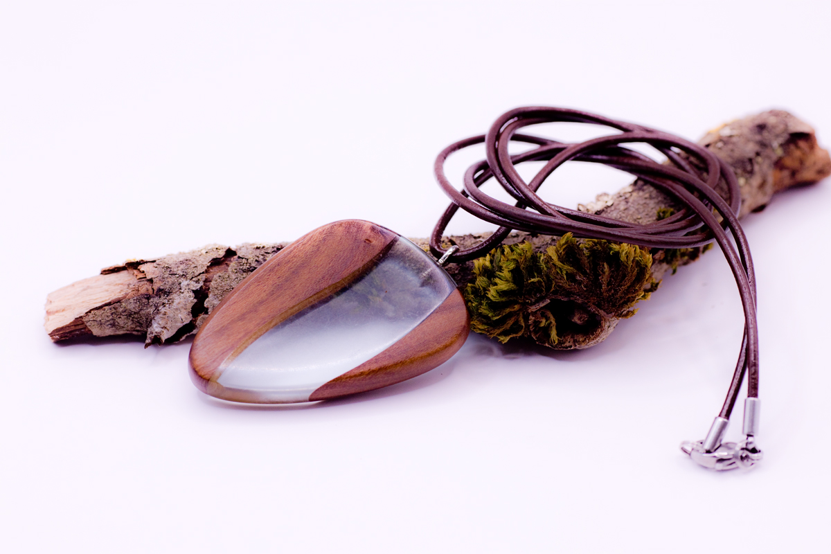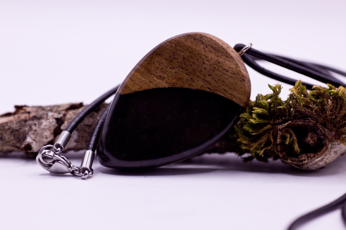 Halsketten aus Edelholz in Verbindung mit Epoxidharz