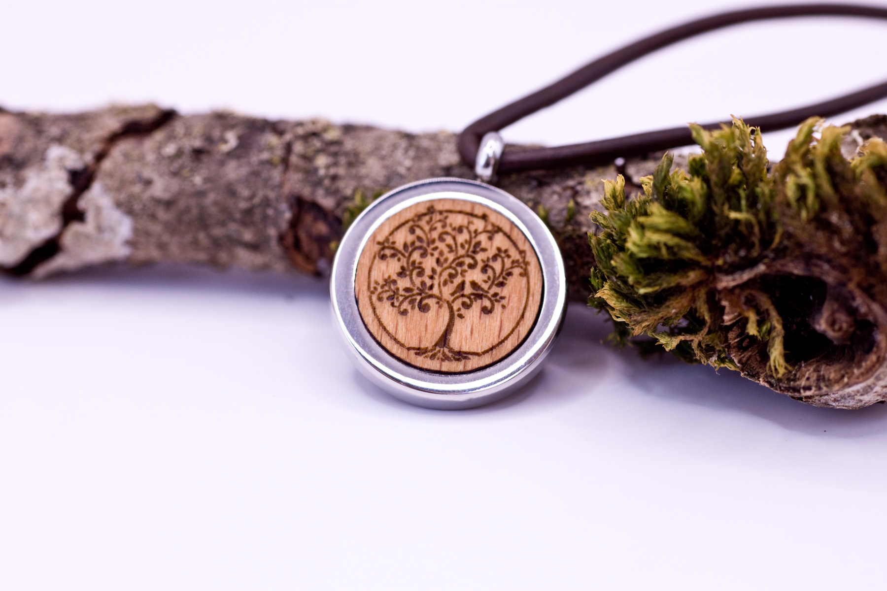 Glück’s Holz Halsketten Medaillon mit Gravur