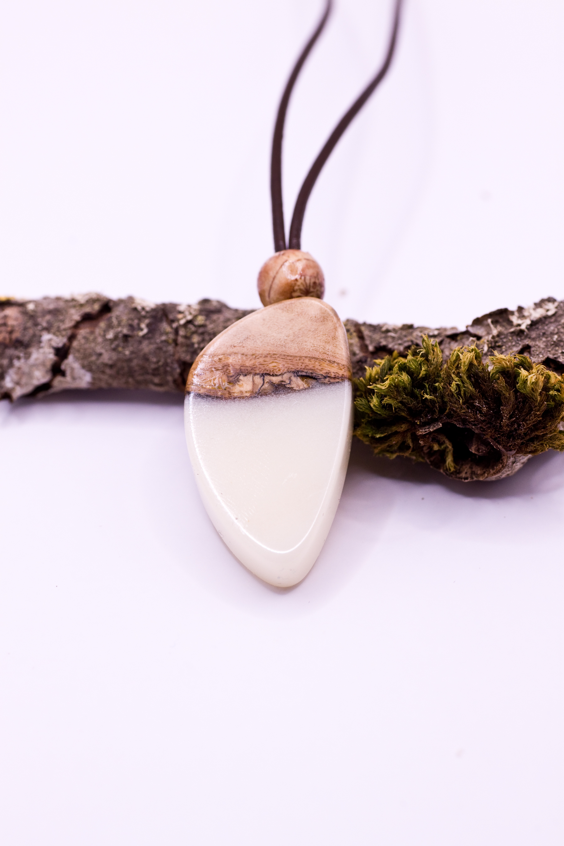 Glück’s Holz Halskette Gratia aus Eschenholz und weißem Epoxidharz