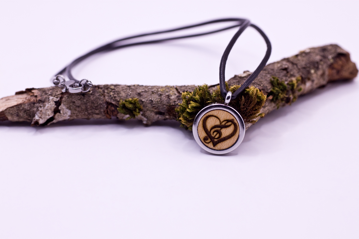 halskette notenschlüsselHalskette Medaillon mit Holzinlay Gravur Herz und Notenschluessel