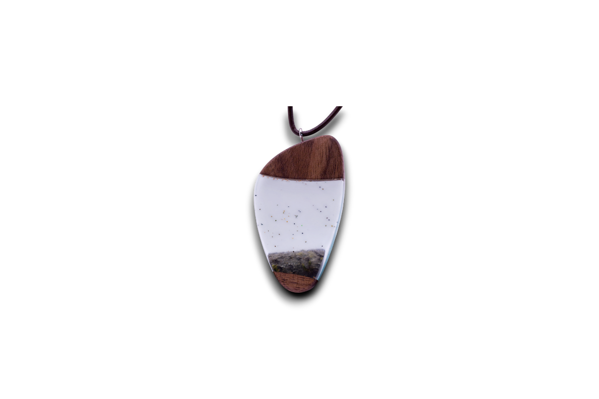 Tauche ein in die Welt des Luxus und der Eleganz mit unserer einzigartigen Halskette, die die Wärme des Walnussholzes mit der strahlenden Schönheit von türkisfarbenem Epoxidharz und goldenem Glitzerstaub vereint. Dieses Schmuckstück fängt die Magie eines Topas-Edelsteins ein und setzt gleichzeitig ein Statement für deinen individuellen Stil.