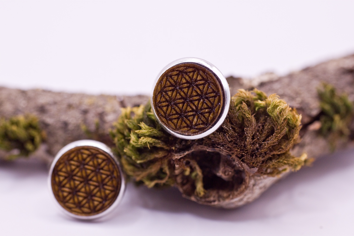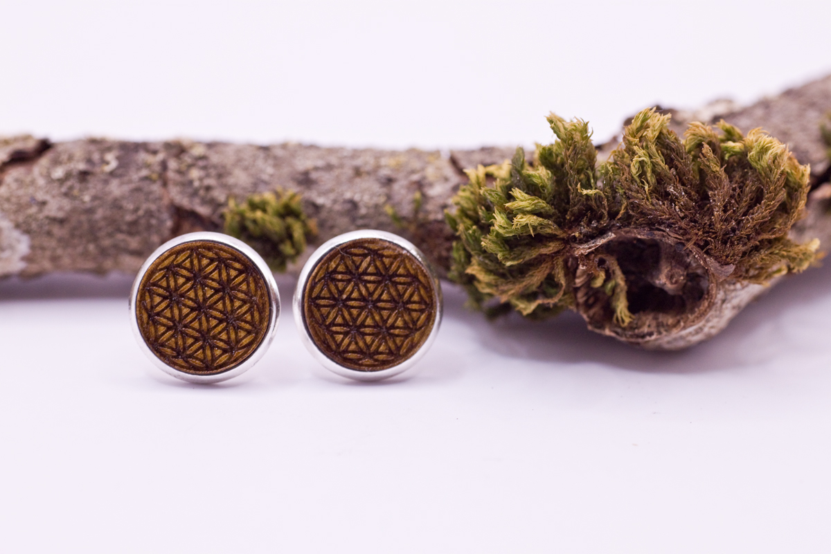 Unsere Ohrstecker werden alle in Handarbeit und in unserer kleinen Werkstatt mit Hilfe unseres Lasers aus verschiedenen Echtholz-Sorten (Sägefurniere) hergestellt. Neben diesem eingravierten Symbol Blume des Lebens, haben wir noch weitere stylische Motive in unserem Shop für Dich zur Auswahl.