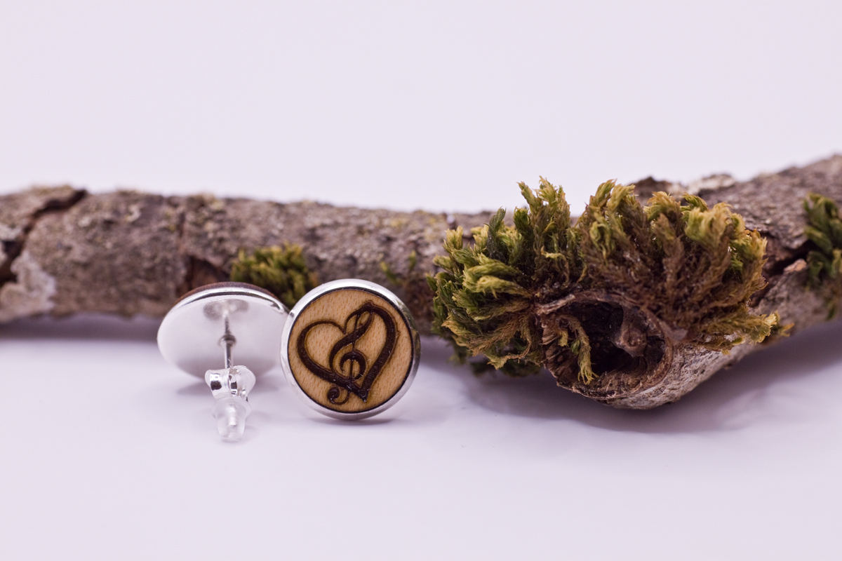 - 1 Paar Glücks-Holz Ohrstecker „Liebe der Musik“.