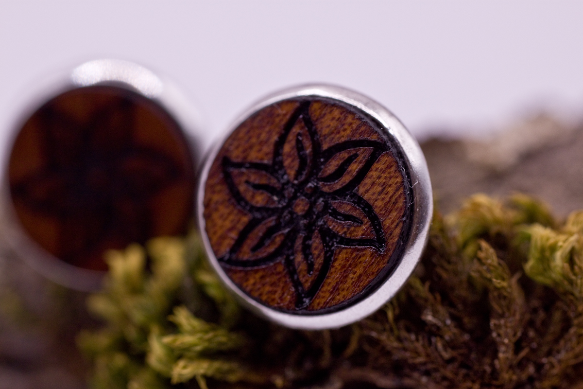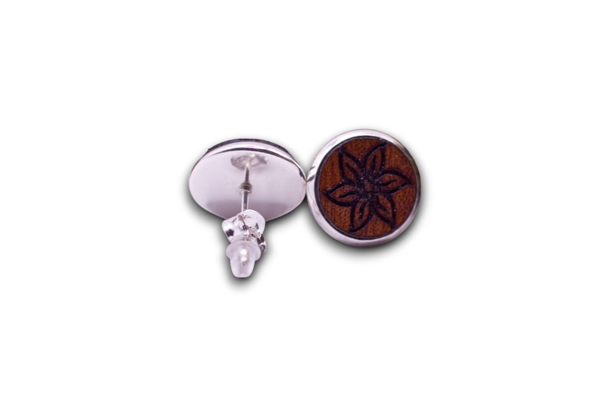 Das Herzstück unserer Ohrstecker, mit einem Durchmesser von 14mm, präsentiert ein Holz-Inlay, das die Liebe zur Natur durch das zarte Edelweiss-Symbol zelebriert. Ein Ausdruck von Eleganz und Naturverbundenheit, der den Ohrschmuck zu einem einzigartigen Kunstwerk macht.