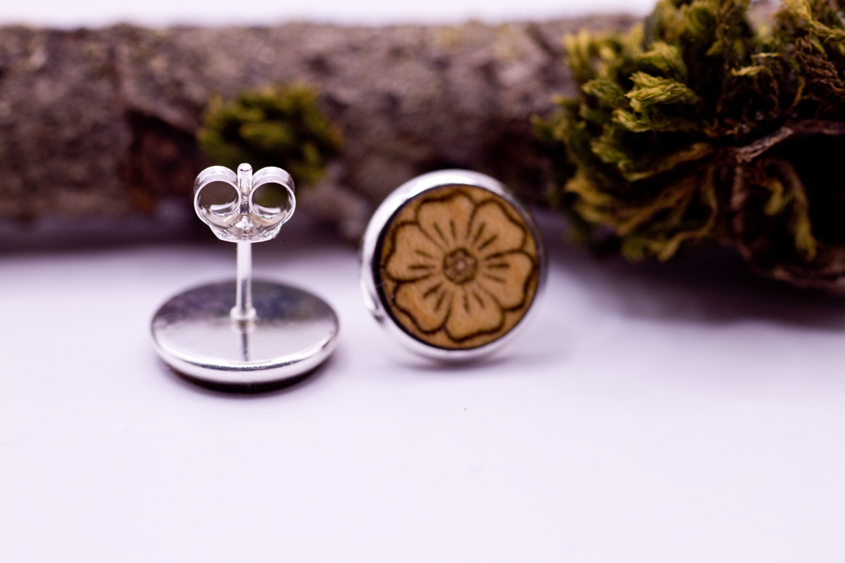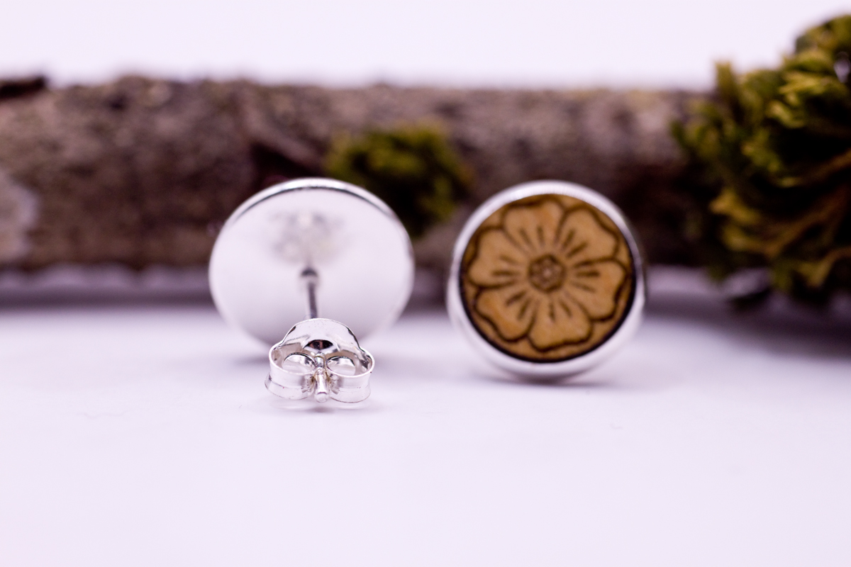 Die Natur umarmen: Glück’s Holz Ohrstecker – Symbol der Blume in 925er Sterling Silber