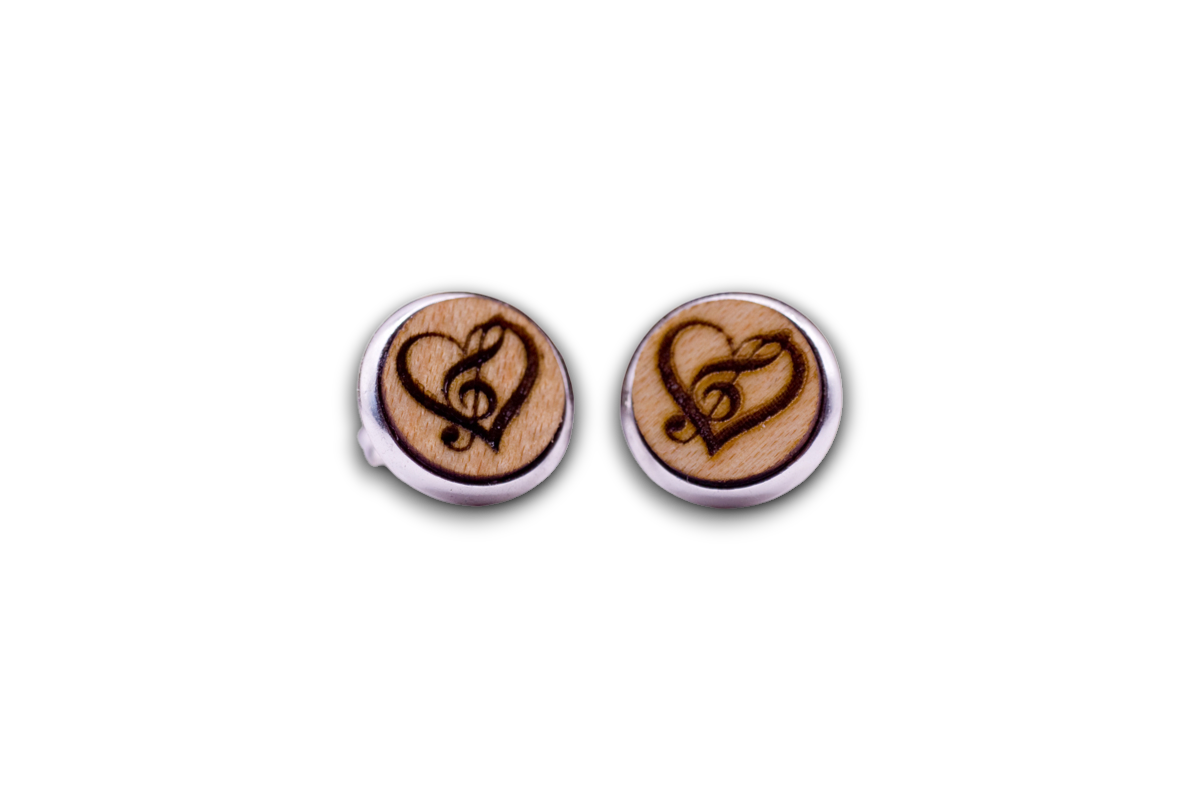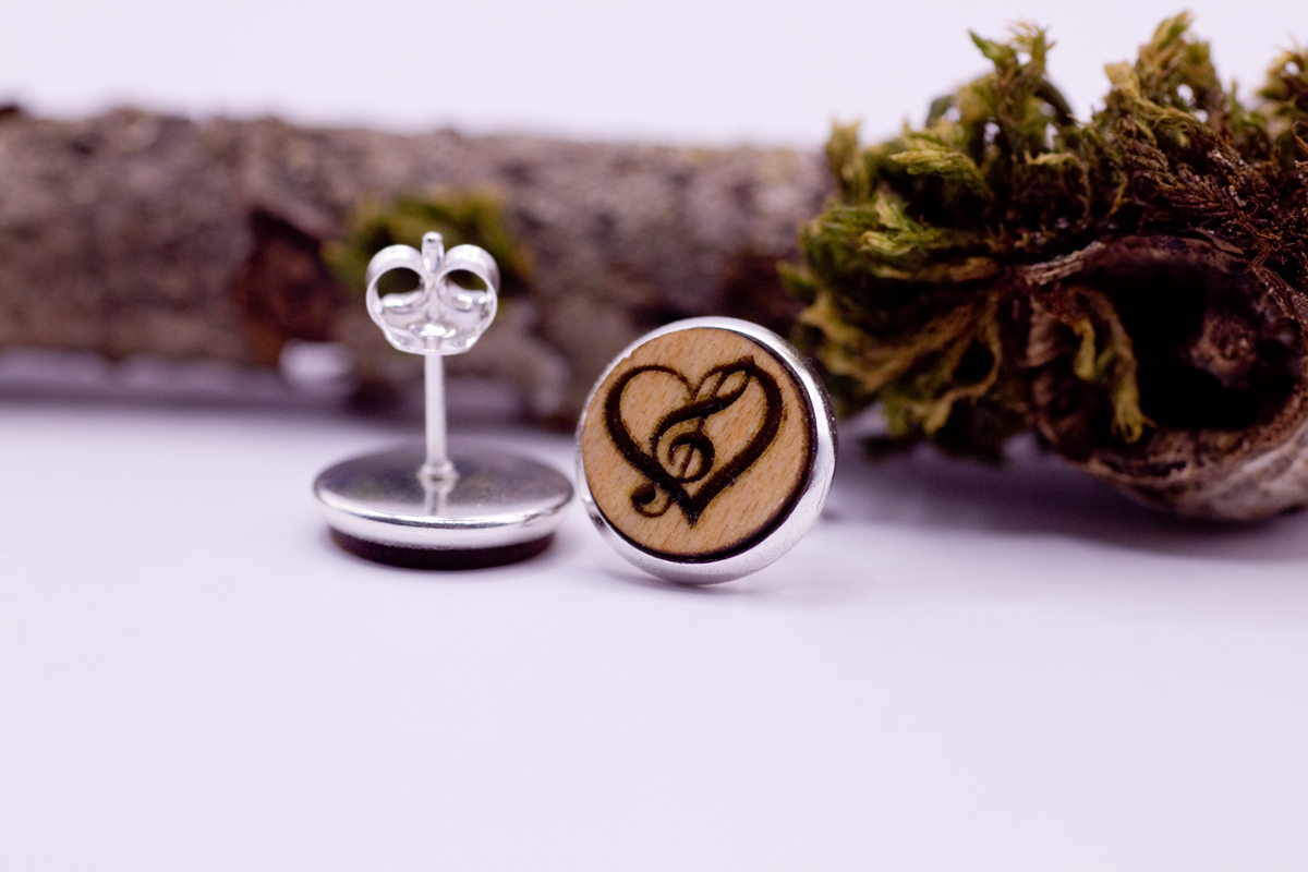 Unsere Ohrstecker werden alle in Handarbeit und in unserer kleinen Werkstatt mit Hilfe unseres Lasers aus verschiedenen Echtholz-Sorten (Sägefurniere) hergestellt. Neben diesem eingravierten Symbol Herz mit Notenschlüssel haben wir noch weitere stylische Motive in unserem Shop für Dich zur Auswahl.