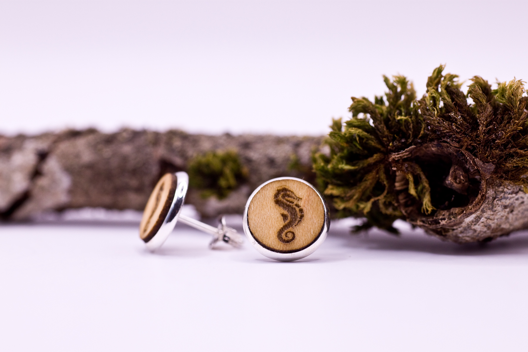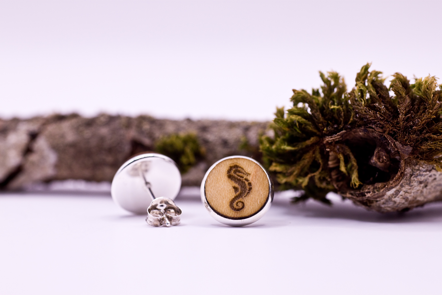 Unsere Ohrstecker werden alle in Handarbeit und in unserer kleinen Werkstatt mit Hilfe unseres Lasers aus verschiedenen Echtholz-Sorten (Sägefurniere) hergestellt. Neben diesem eingravierten Symbol Seepferdchen haben wir noch weitere stylische Motive in unserem Shop für Dich zur Auswahl.