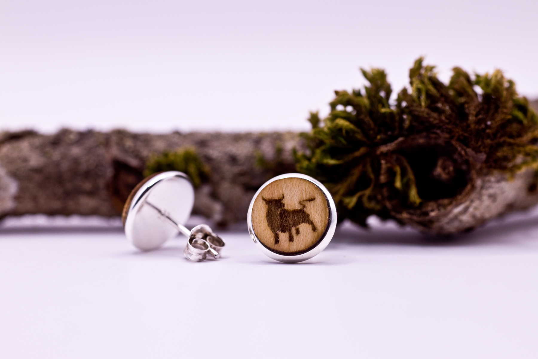 Glück’s Holz Ohrstecker Symbol Sternzeichen Stier Ø 12mm