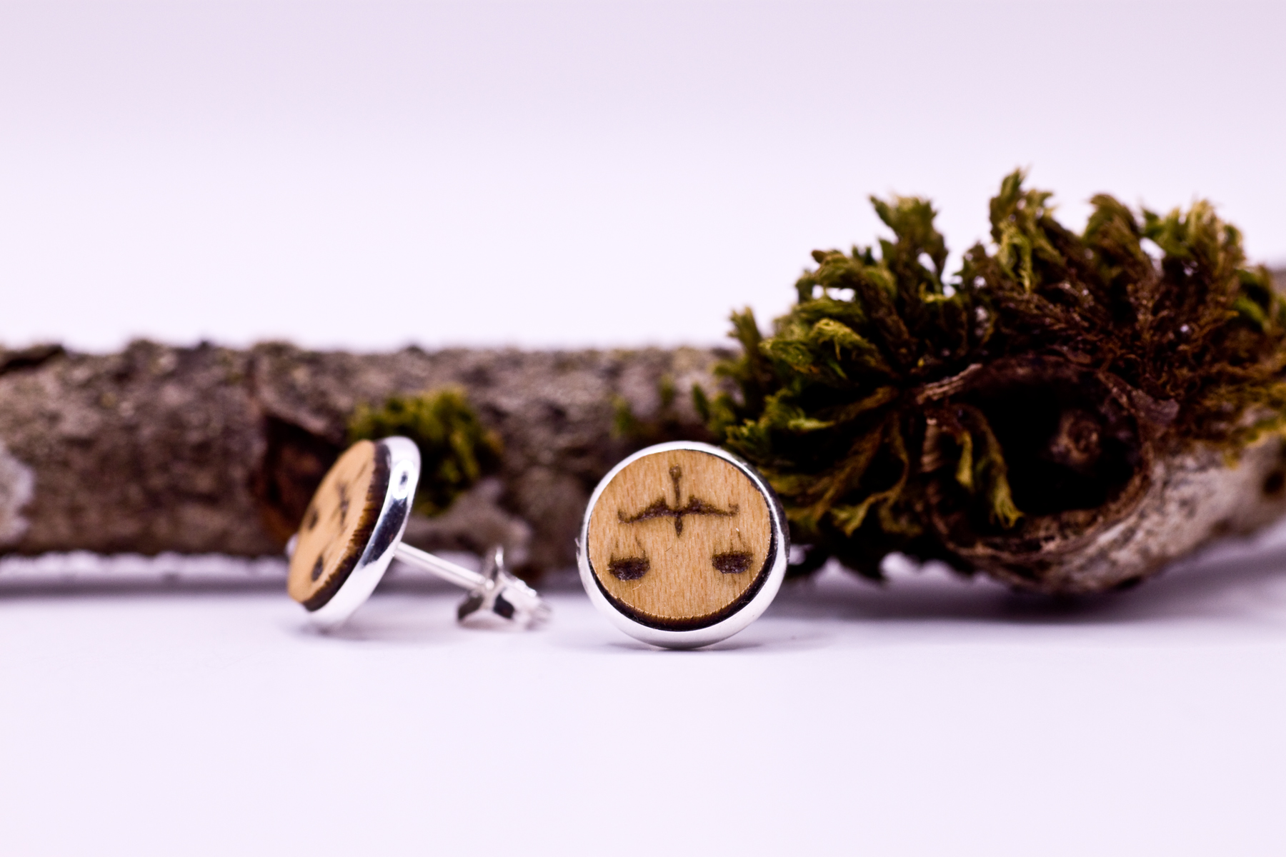 • 1 Paar Glücks-Holz Ohrstecker mit dem Sternzeichen Waage