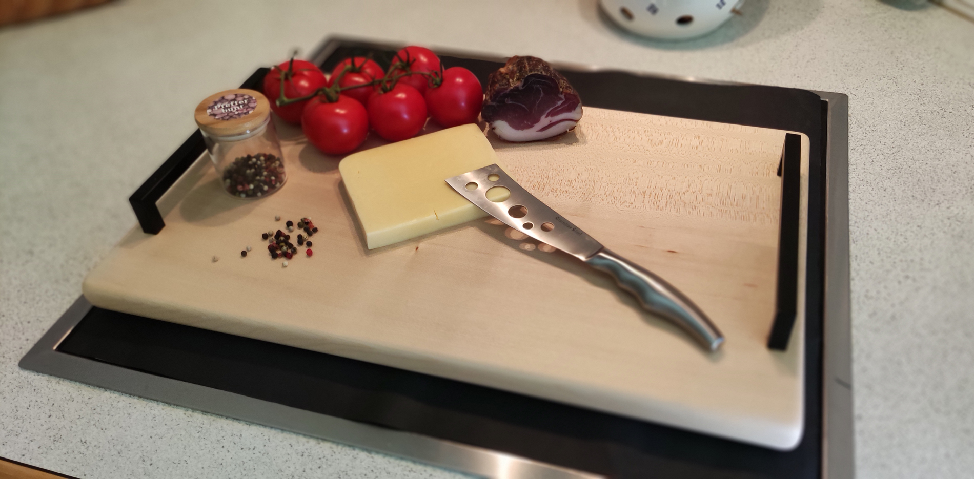 - Hygienische Luftzirkulation: Der Luftspalt sorgt für eine ständige Luftzirkulation und hält das Brett trocken und keimfrei.