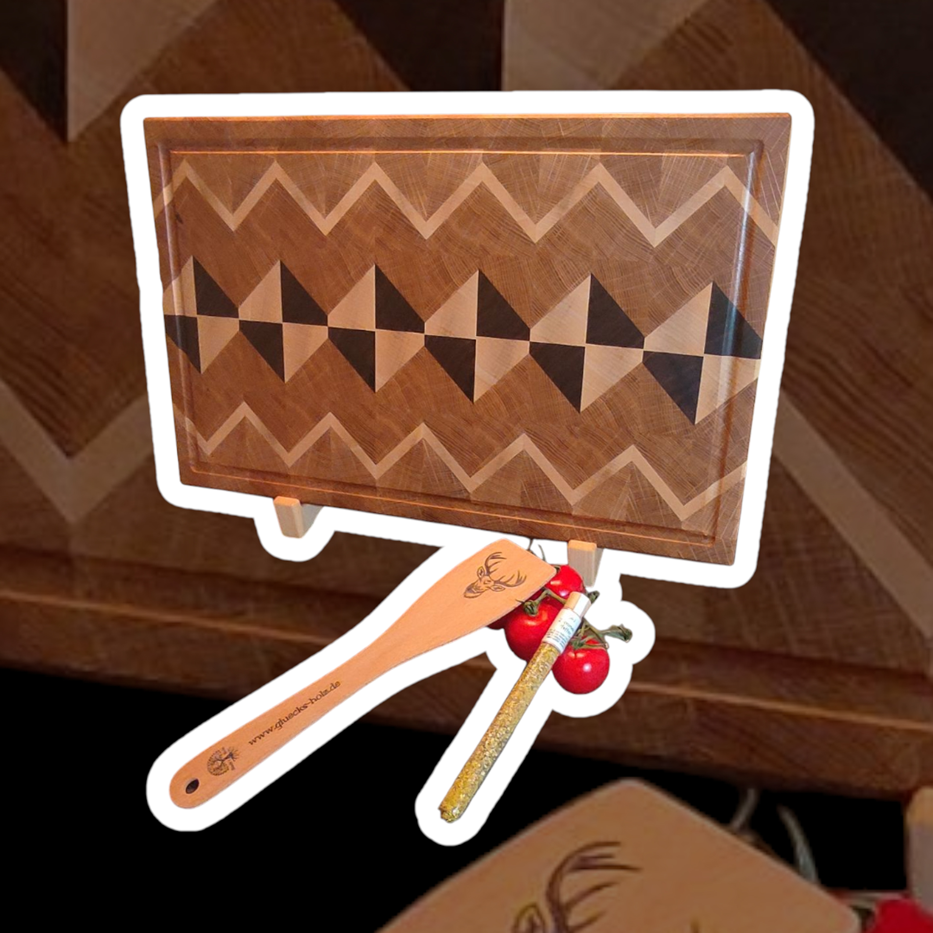 Glück’s Holz Stirnholz-Schneidebrett Diamond-Muster Premium mit Saftrille