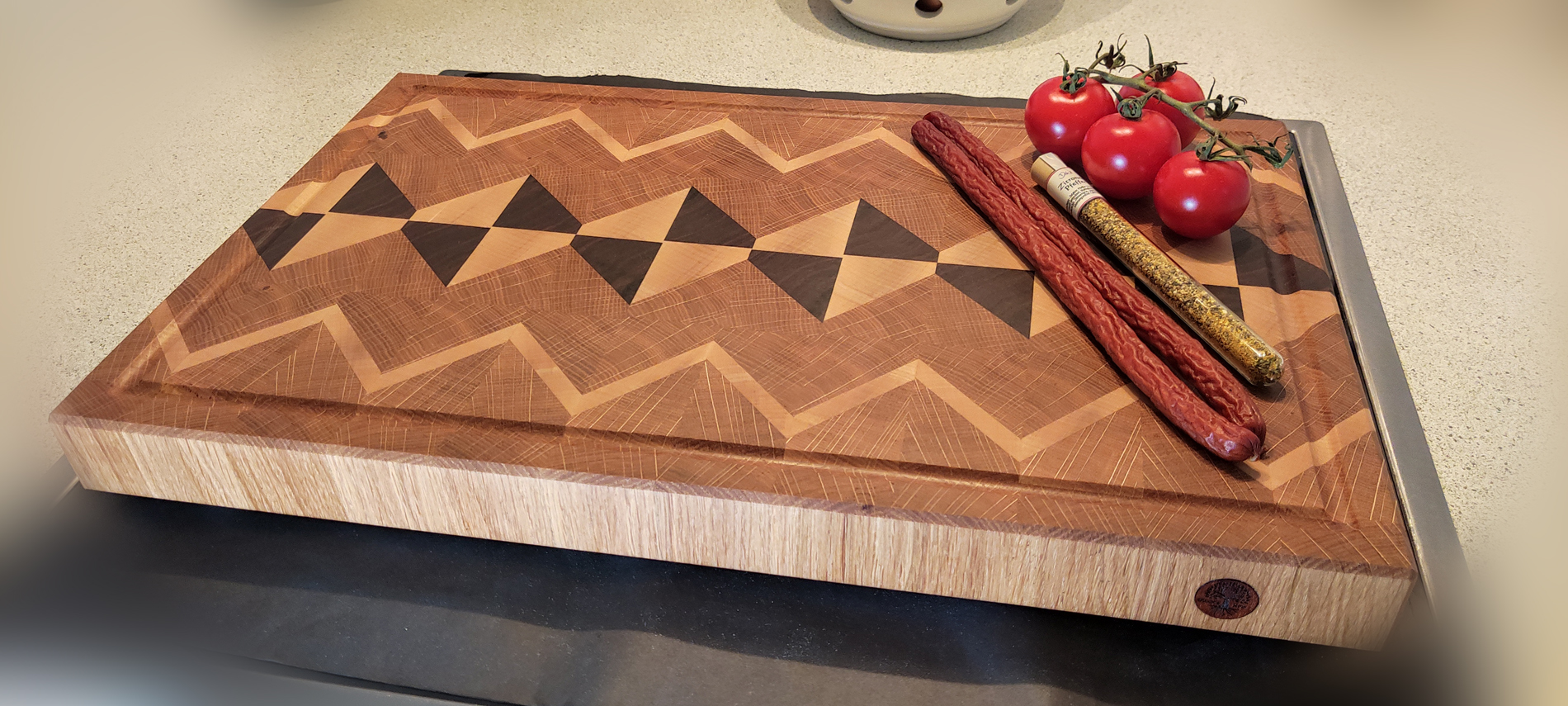 Unser Symmetrisches Diamond-Muster Stirnholz-Schneidebrett mit Saftrille