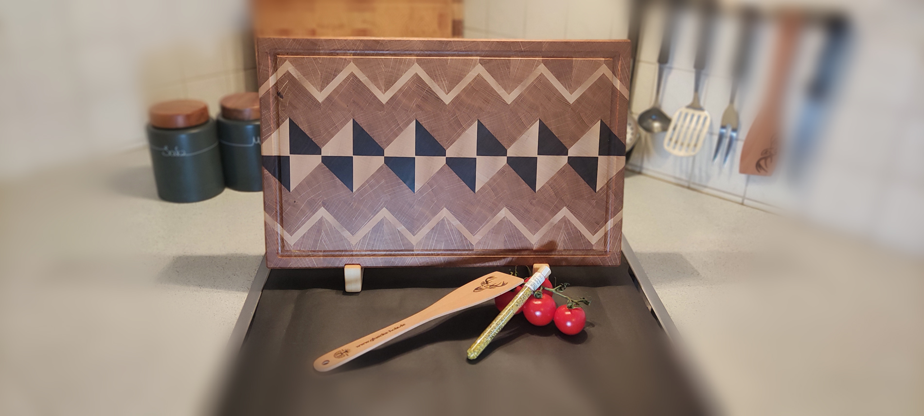 Tauche ein in die Welt der erstklassigen Küchenutensilien, die nicht nur funktional sind, sondern auch ein Kunstwerk darstellen. Unser symmetrisches Diamond-Muster Stirnholz-Schneidebrett, handgefertigt in Deutschland, ist ein Ausdruck von Qualität, Stil und Präzision. Erlebe die Verbindung von Ästhetik und Funktionalität in deinem Alltag.