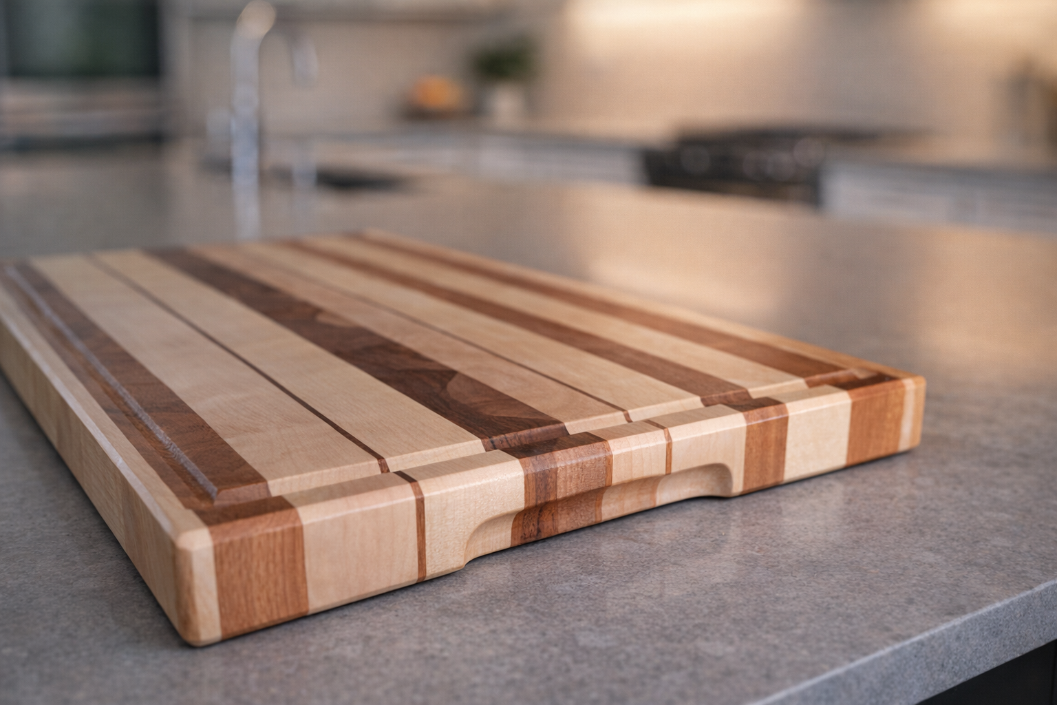 Stirnholz Schneidebrett aus Eiche, Ahorn & Walnuss – Handgefertigte Qualität von Glück’s Holz