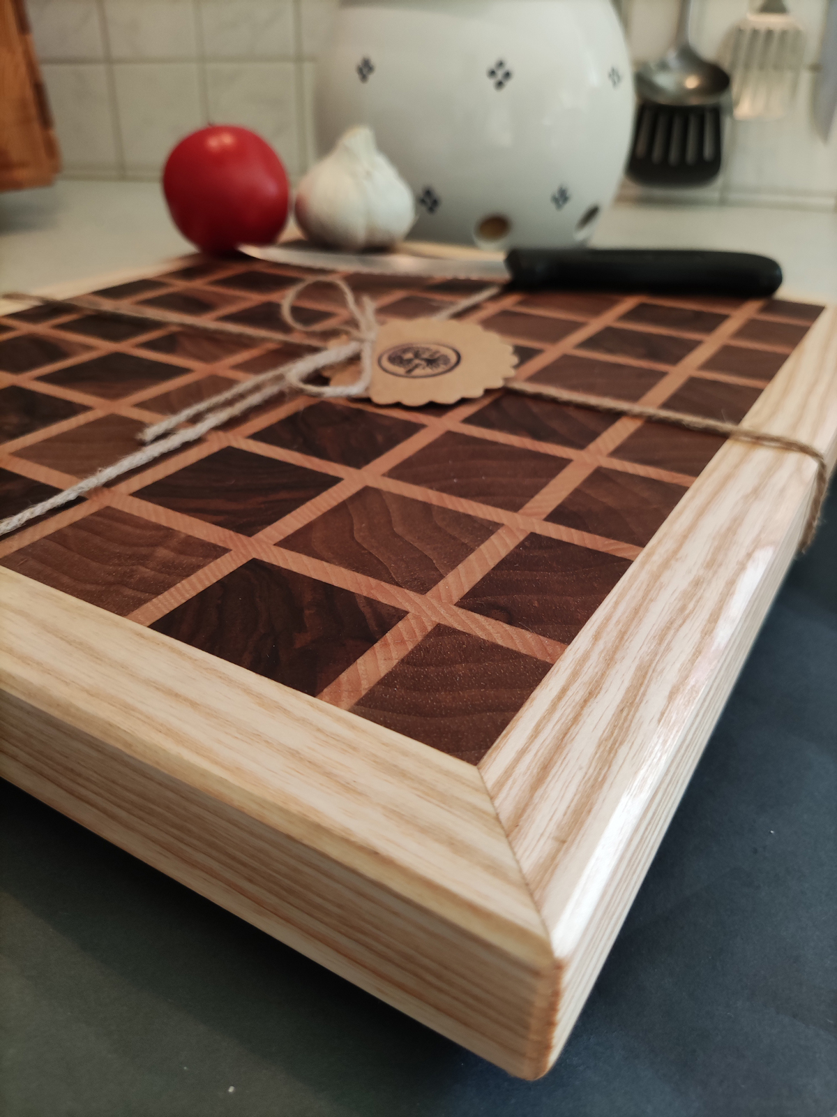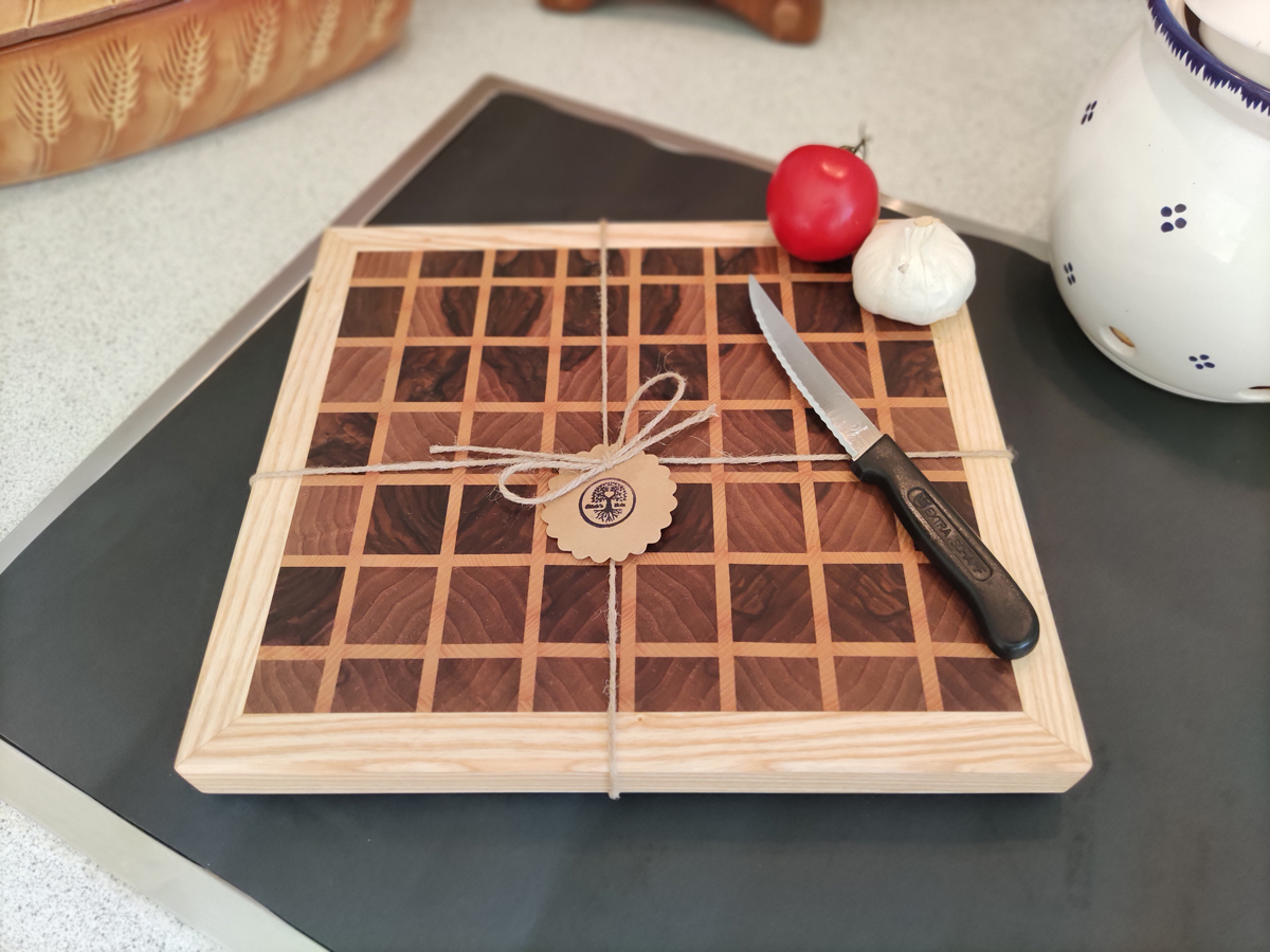 Stirnholz Schneidebrett aus Nussbaum und Esche