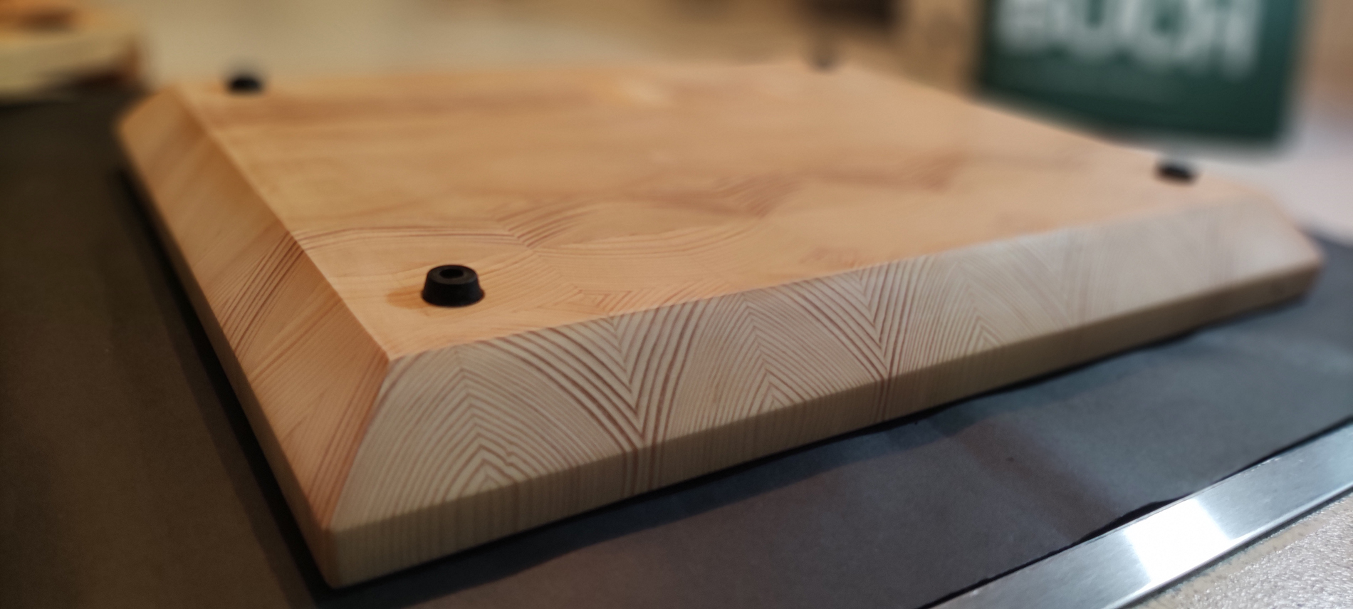 Spruce-Wood Stirnholz-Schneidebrett middle mit Schweizer Kante und Gummi Füße