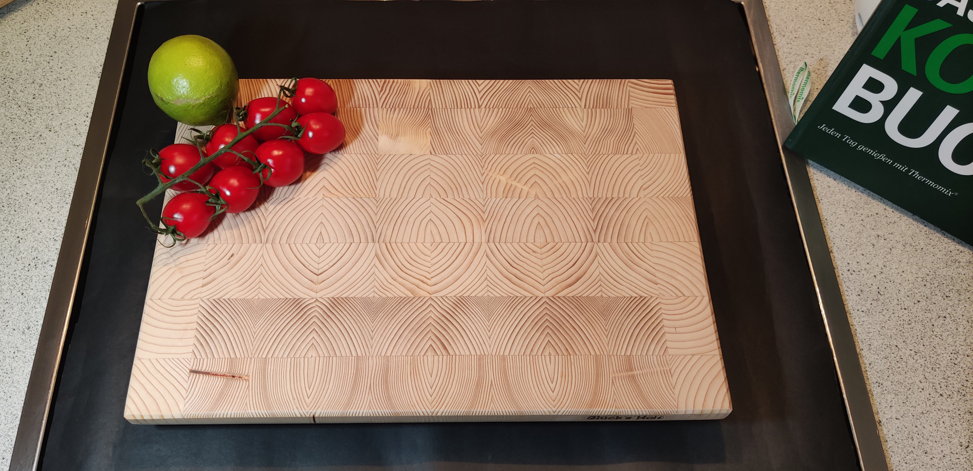 Ein gut gepflegtes Stirnholz-Schneidebrett bietet somit nicht nur eine schöne und langlebige Schneidefläche, sondern trägt auch erheblich dazu bei, die Lebensdauer und Schärfe Deiner Messer zu verlängern.
